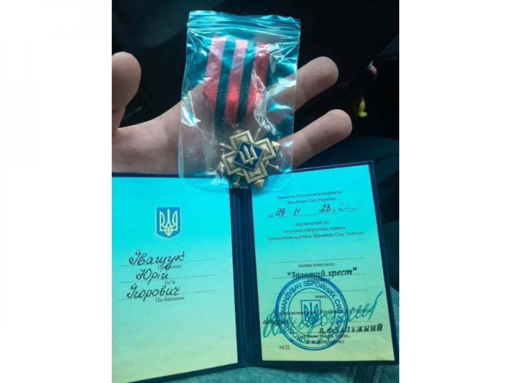 Підрозділ, у якому служить захисник, перебуває безпосередньо біля передових ворожих позицій. Наказ про відзначення “Золотим хрестом” Юрія Іващука Валерій Залужний підписав 29 листопада 2023 року.