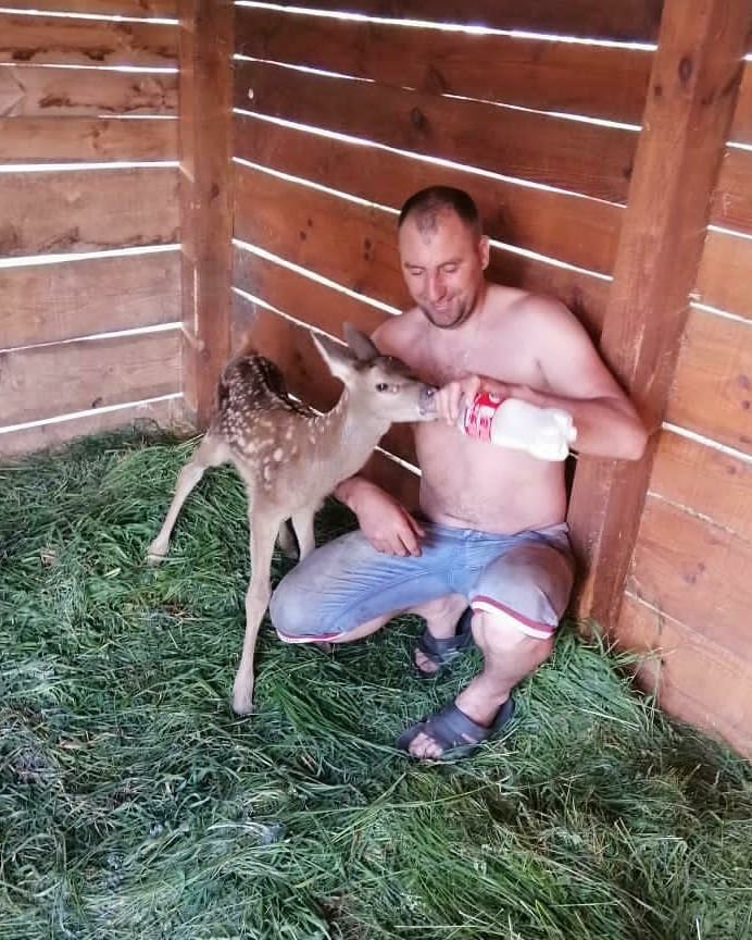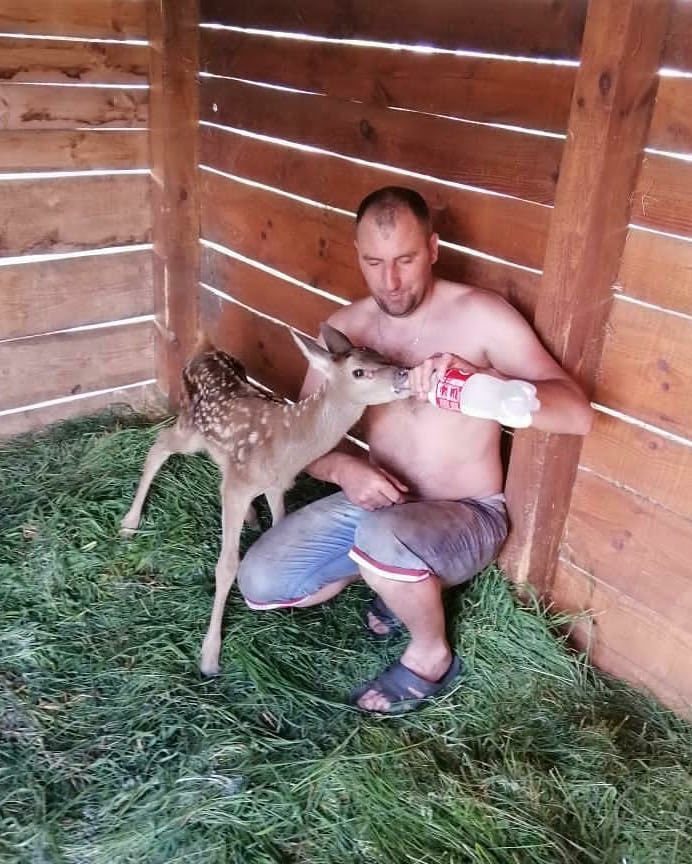 Небайдужі люди забрали тварину до себе додому, годували його з пляшки молоком. Коли тварина виросла, його випустили з вольєру, але покидати нову затишну домівку - олень не захотів.