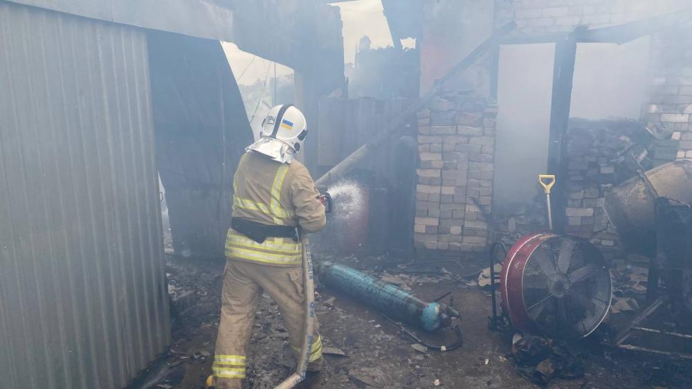 Прибувши за вказаною адресою рятувальники побачили, що вогнем охоплені господарські будівлі, також існує загроза перекидання вогню на ще одну господарську будівлю. На гасіння оперативно було подано вогнегасні речовини. Під час ліквідації пожежі рятувальники винесли з палаючих будівель п'ять газових балонів.