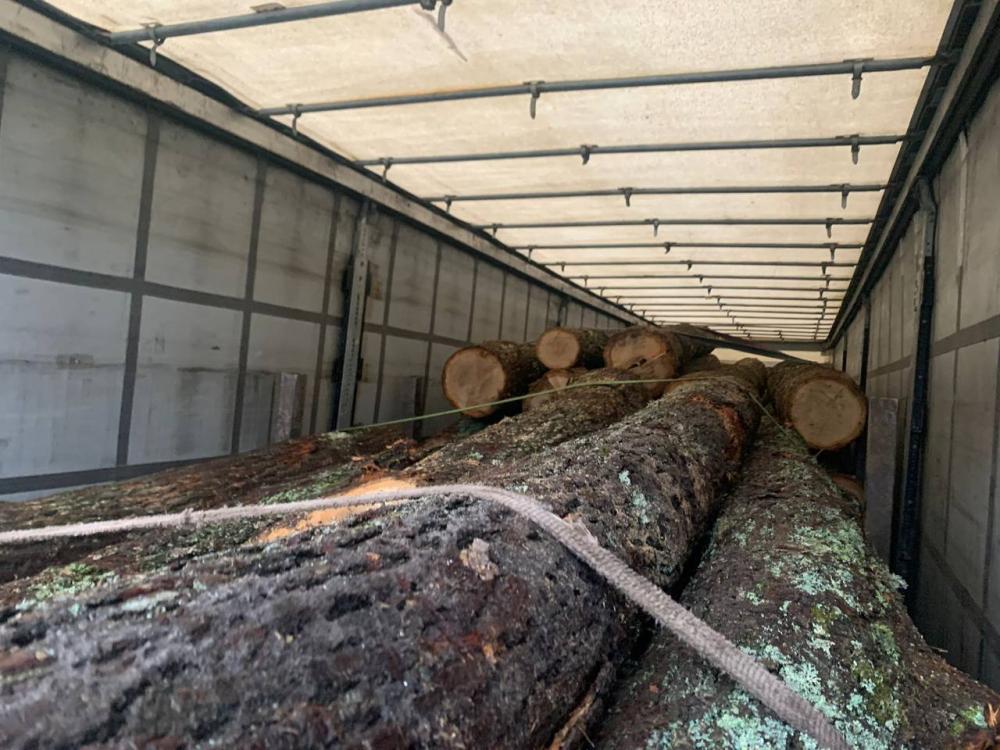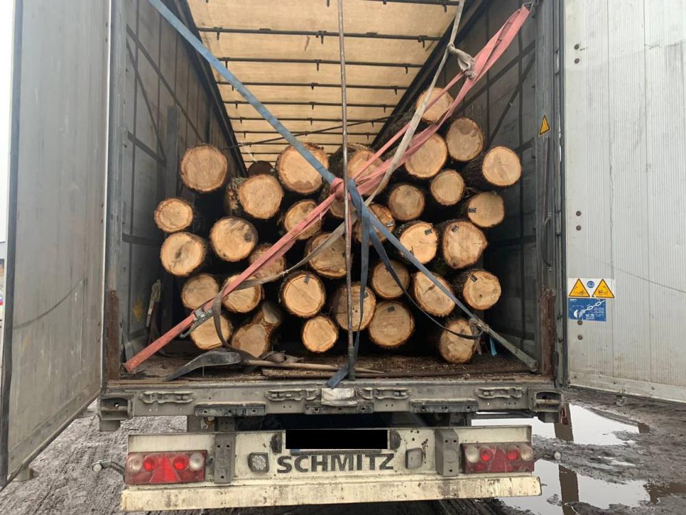 Поліцейські зупинили тягач, у тентованому напівпричепі якого знаходилася деревина. Жодних підтверджуючих документів на її перевезення 57-річний костопільчанин не надав.