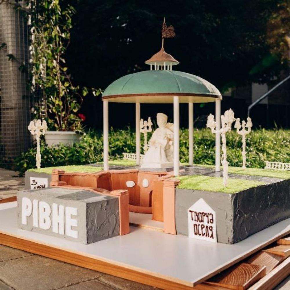 До Дня міста у Творчій оселі підготували подарунок для рівнян. Кондитери магазину спекли торт у вигляді скульптури княгині Марії Несвицької — власниці Рівного з 1479 року.