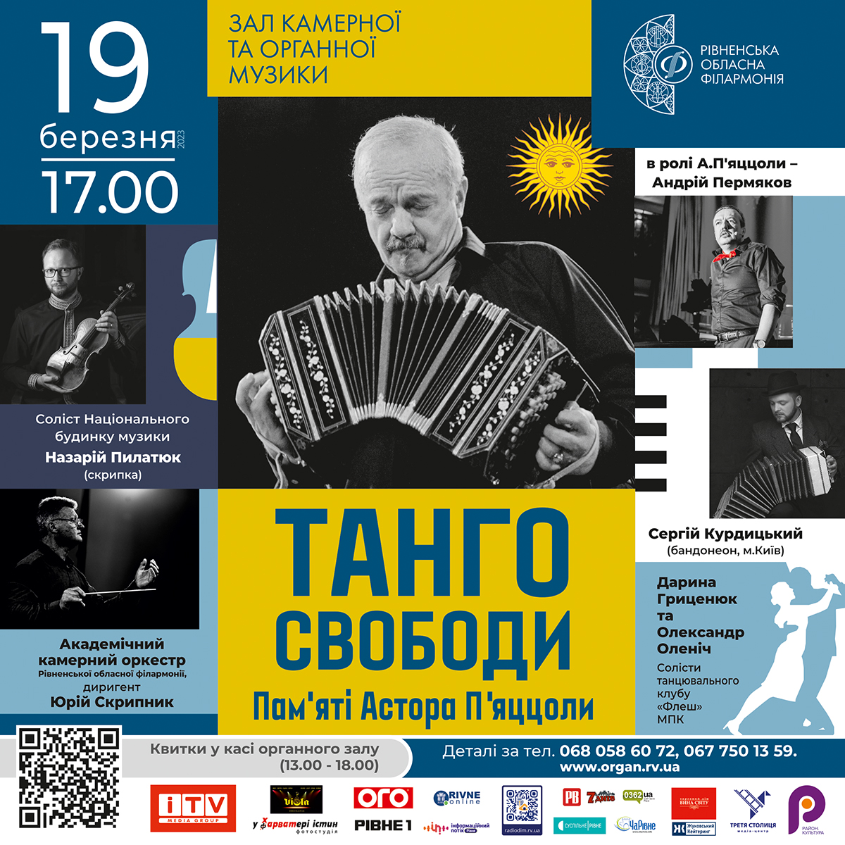 «Астора П’яцоллу – аргентинський композитор ХХ ст., виконавець на бандонеоні (різновид акордеону) - на Батьківщині називають «El Gran Ástor» («Великий Астор»). Саме завдяки П’яццоллі весь світ без пам’яті закохався у tango nuevo (нове танго), в якому народний аргентинський танець поєднався з прийомами класичної поліфонії та джазовими гармоніями. Танго врешті вийшло за межі танцювальних залів і зазвучало з аристократичних філармонійних сцен», - йдеться у повідомленні.