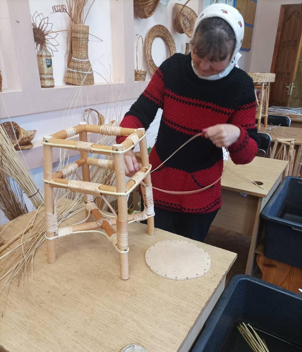 Тим часом, завершився курс вивчення теоретичного матеріалу, і слухачі приступили до здобуття практичних навичок – заготівлі природнього матеріалу (лозових гілок), вимочування, шкурення, висушування, плетіння, покриття лаком. В руках працьовитих жінок народжуються основи майбутніх корзин, ваз, підносів, сувенірів, аксесуарів, табуретів, стільців, крісел-гойдалок.