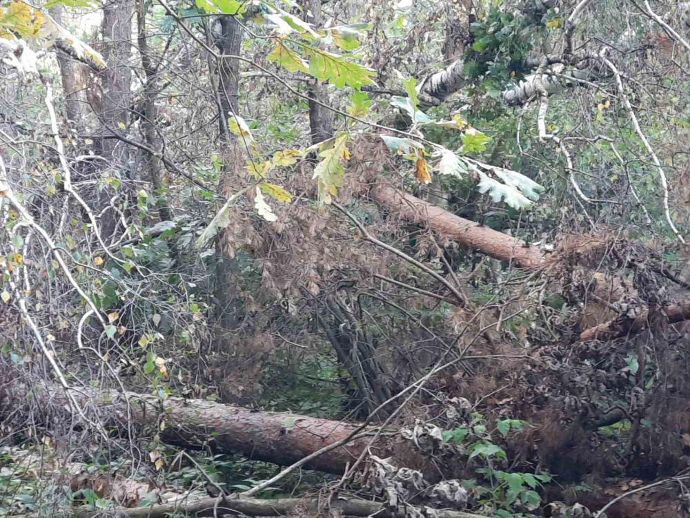 На 17 обходах лісгоспу відкривається моторошна картина: 20-25 метрові сосни і навіть дуби, вивернуті з корінням. Подекуди вони навіть перегороджували й лісові доріжки. Однак прибрати ці дерева не можна. Потрібні дозволи для того, щоб їх зрізати і переробити. А нині, позаяк триває процес ліквідації підприємства, цим займатися нікому. Так викорчувані дерева лежать уже три місяці. Більшість із них уже не придатні для будувельних цілей, бо чимало з них уже погнили, посохли, декотрі поточив короїд.