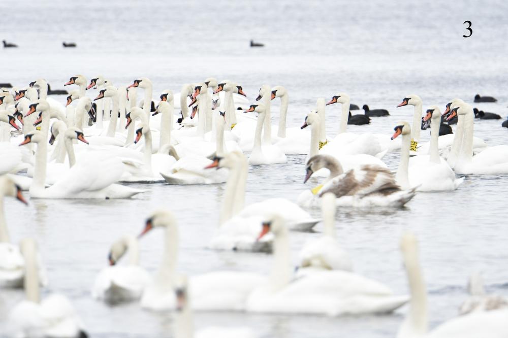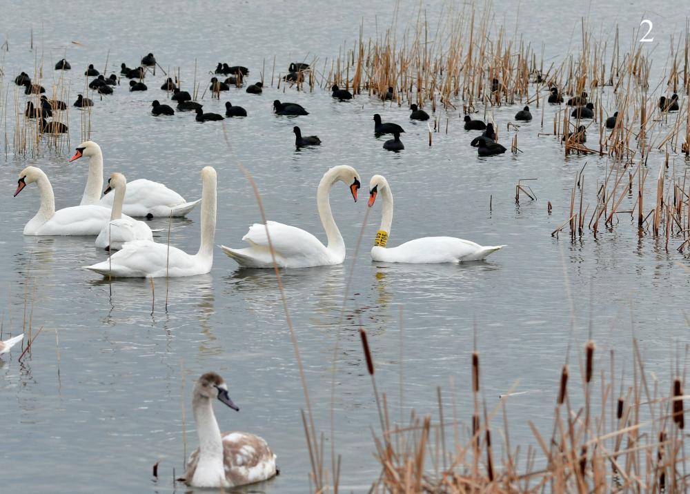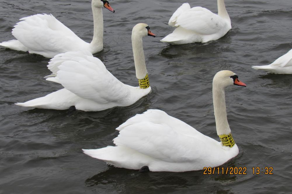У січні 2022 року 15 лебедів-шипунів, що зимували на водосховищі Хмельницької АЕС помітили шийними кільцями.
