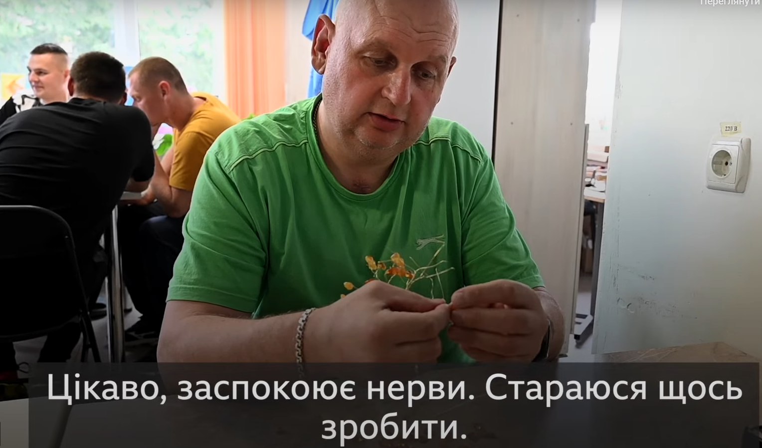 Працівники підприємства групи компаній “Амбер Гальбін” проводять майстер-клас для пацієнтів реабілітаційного центру у Клевані
