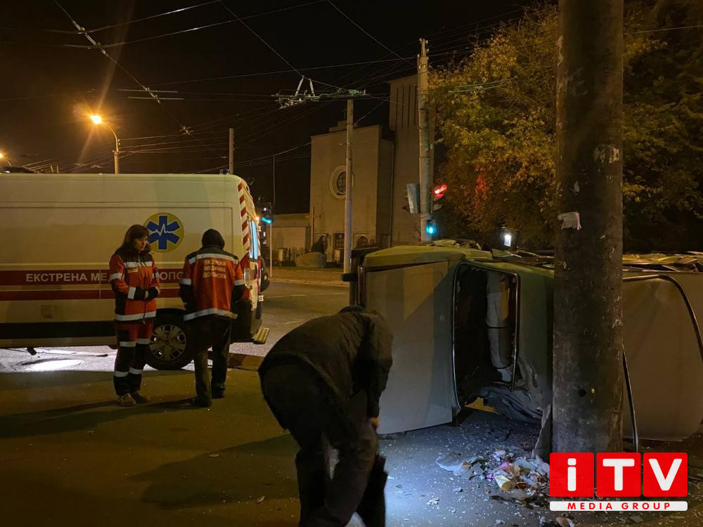 Вчора ввечері у Рівному на вулиці Соборній поблизу пивзаводу зіткнулись дві автівки. Легковик перекинувся на бік та зіткнувся з електропорою.