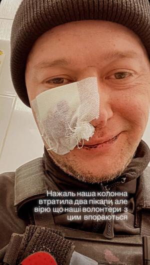 "Наша колона втратила два пікапи, але вірю, що наші волонтери з цим впораються", – написа він у своєму Instagram.