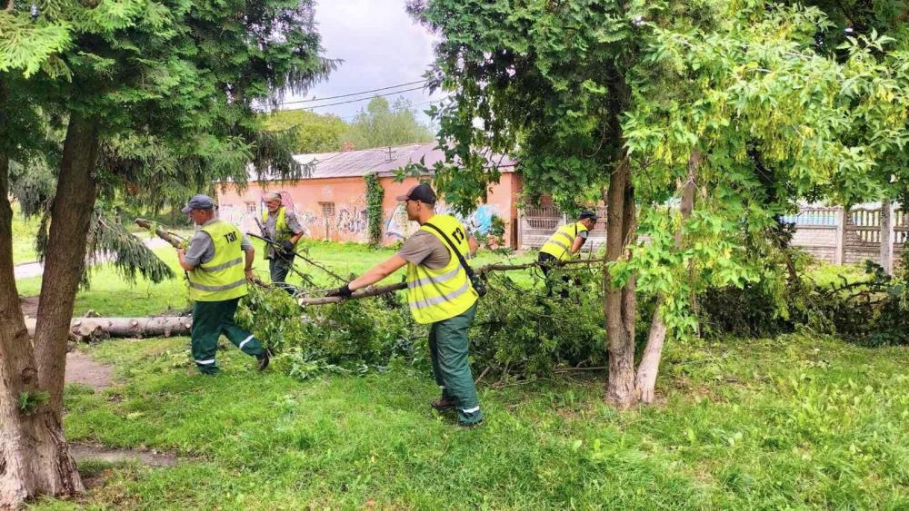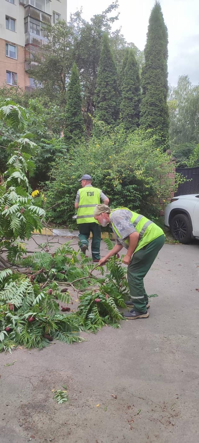 Наразі працівники продовжують роботи з прибирання повалених дерев та поламаного гілля.