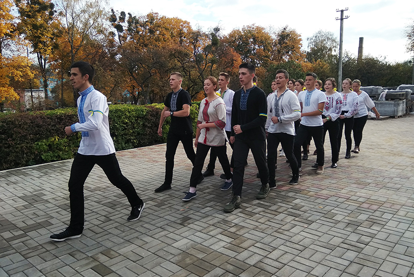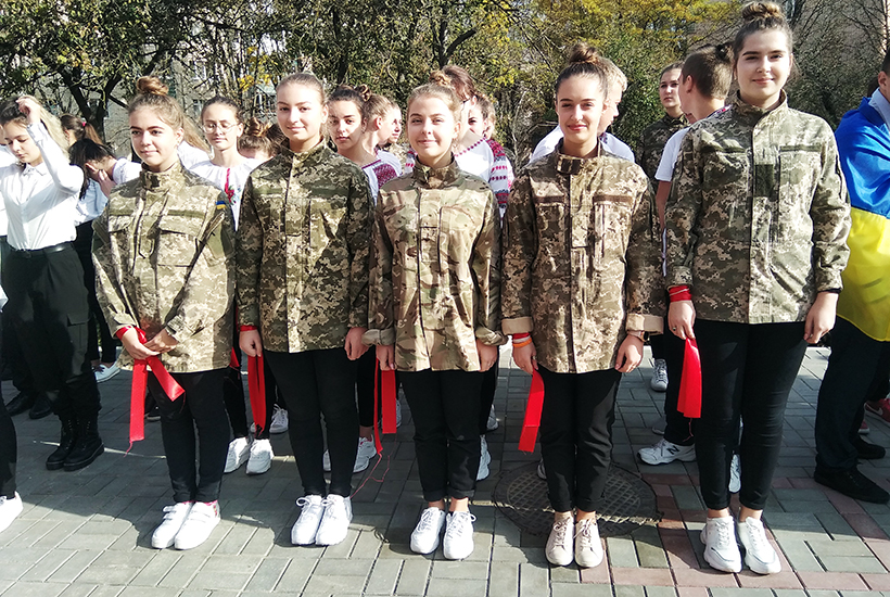Учні 10-х та 11-х класів одягнулися у строї, кожен клас виділився по своєму. Одні – у військовій формі, інші – у вишиванках, треті – у чорних футболках, наче майбутні спецназівці. Кожен клас обрав собі не лише форму, а й стройову пісню. Наприклад, 11-В виступав у формі січових стрільців і виконував пісню січових стрільців «Гей, там на горі Січ іде». «Брати участь в такому конкурсі – це почесно, - вважає одна з таких «командирів» 16-річна учениця 11-В класу Катерина Марчук. – Ти йдеш, на тебе дивляться учні молодших класів, намагаючись взяти з тебе приклад. Вирішила стати командиром, щоб довести, що жінки не є слабкою статтю. Навіть зараз у нашій армії є жінки. Не приховую, що було важко тренувати цілий клас. Було важко їх зібрати та викликати бажання щось зробити. Зрештою мені вдалося їх вишикувати і ми виступили класно».