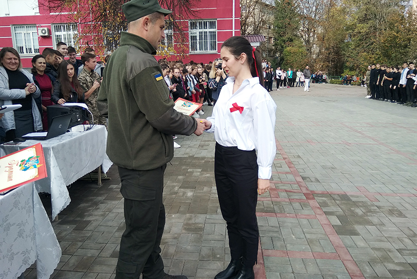 Конкурс завершився врученням нагород, а також грамоти вчителю від військової частини 3055 НГУ, за активну життєву позицію та участь у військово-патріотичній підготовці майбутніх гвардійців.
