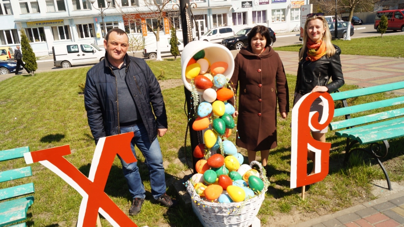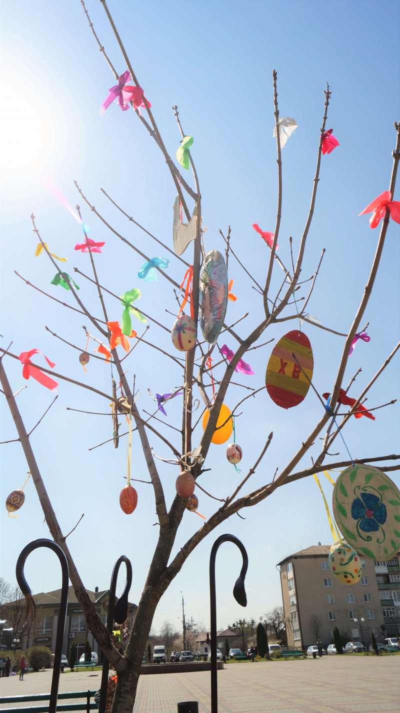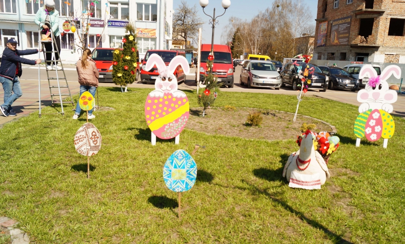 Виготовили прикраси педагогічні колективи міста і старостинських округів. В кожному освітньому закладі дуже творчо підійшли до ідеї прикрасити головну площу нашої громади, крім того, кожен учнівський колектив постарався, аби і під вікнами їхніх навчальних кабінетів на Великодні свята було ошатно та красиво.