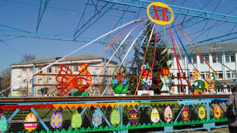 До Світлого Христового Воскресіння майдан Незалежності у Радивилові задекорували крашанками, писанками та іншою пасхальною атрибутикою.