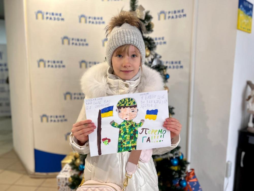 "Наші військові особливо потребують підтримки та допомоги, а ще більше їхні серця наповнюються теплом та світлом, коли вони отримують малюнки від маленьких рівнян, які щиро вірять в нашу перемогу", - написав він.