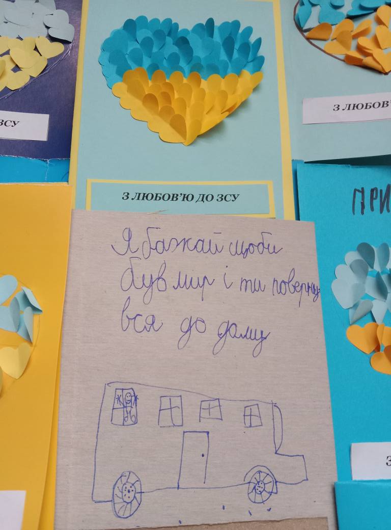 На саморобних подарунках, створених у рамках акції "З любов'ю до ЗСУ", діти залишили вітання і побажання для наших захисників та захисниць: