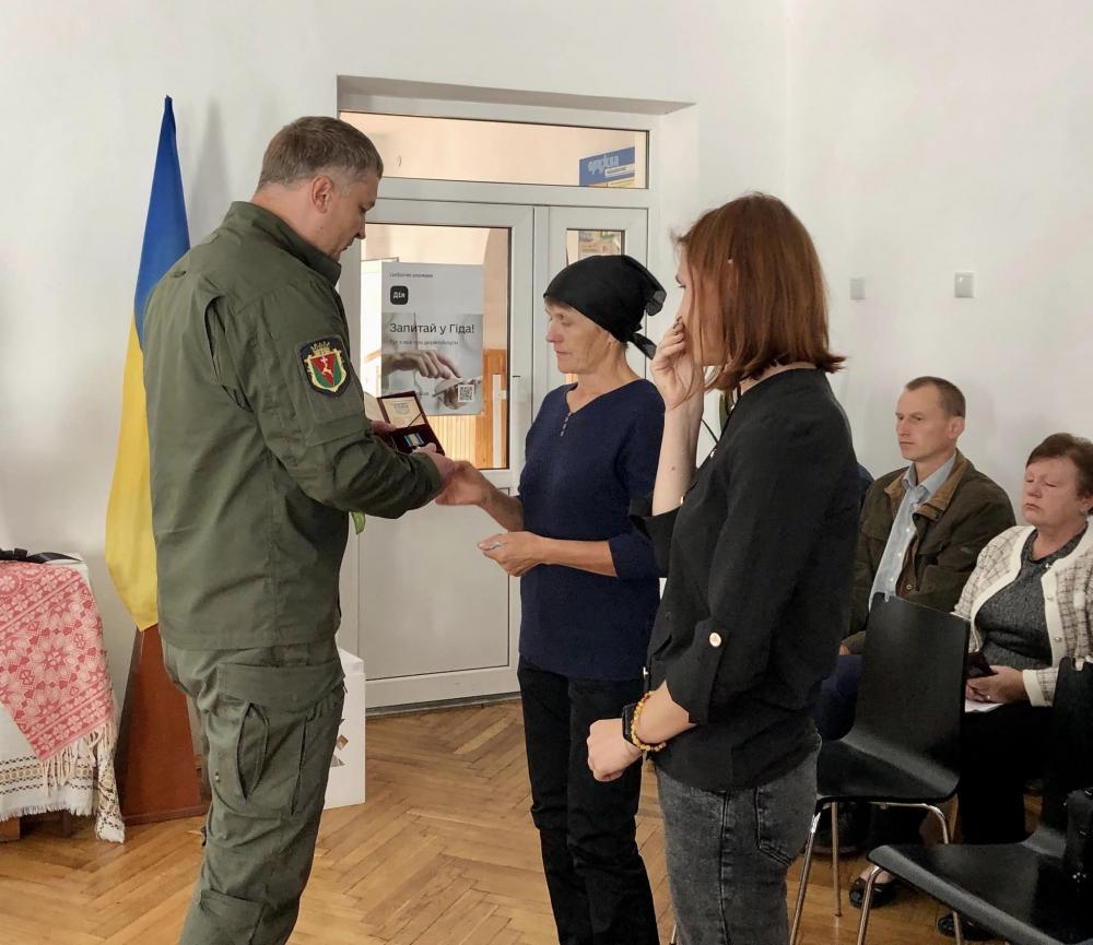Державну нагороду захисникв вручили мамі загиблого Олені Мисько та сестрі Тетяні.