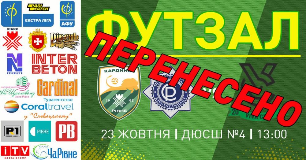 Матч восьмого туру PariMatch Екстраліги між командами "Кардинал Рівнестандарт" та "Viva Cup", який мав відбутися у суботу 23-го жовтня - перенесений на невизначений термін.