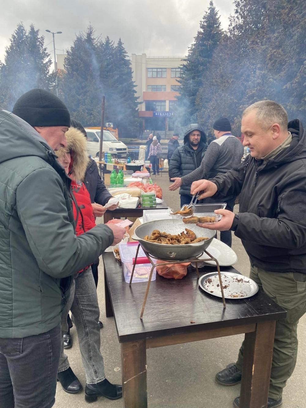 Приєднатись до ярмарку вирішили рівненські та костопільські підприємці. Окрім смачної випічки та молочних виробів, усі охочі мали змогу скуштувати, власне, волонтерські страви. Неабияк рівнянам припав до смаку «бойовий шашлик» та «бойовий глінтвейн» від студентів НУВГП. Окрім того, містяни не могли пройти повз, не скуштувавши смачний плов і шаурму від Мансура з Чугуєва. І це далеко не повний перелік оригінальних волонтерських страв, якими волонтери частували рівнян.