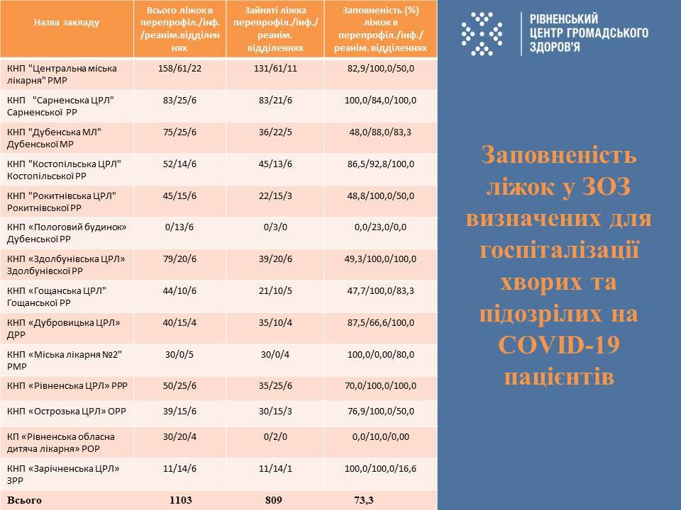 Медзаклади Рівненщини на 73,3% заповнені хворими на COVID-19