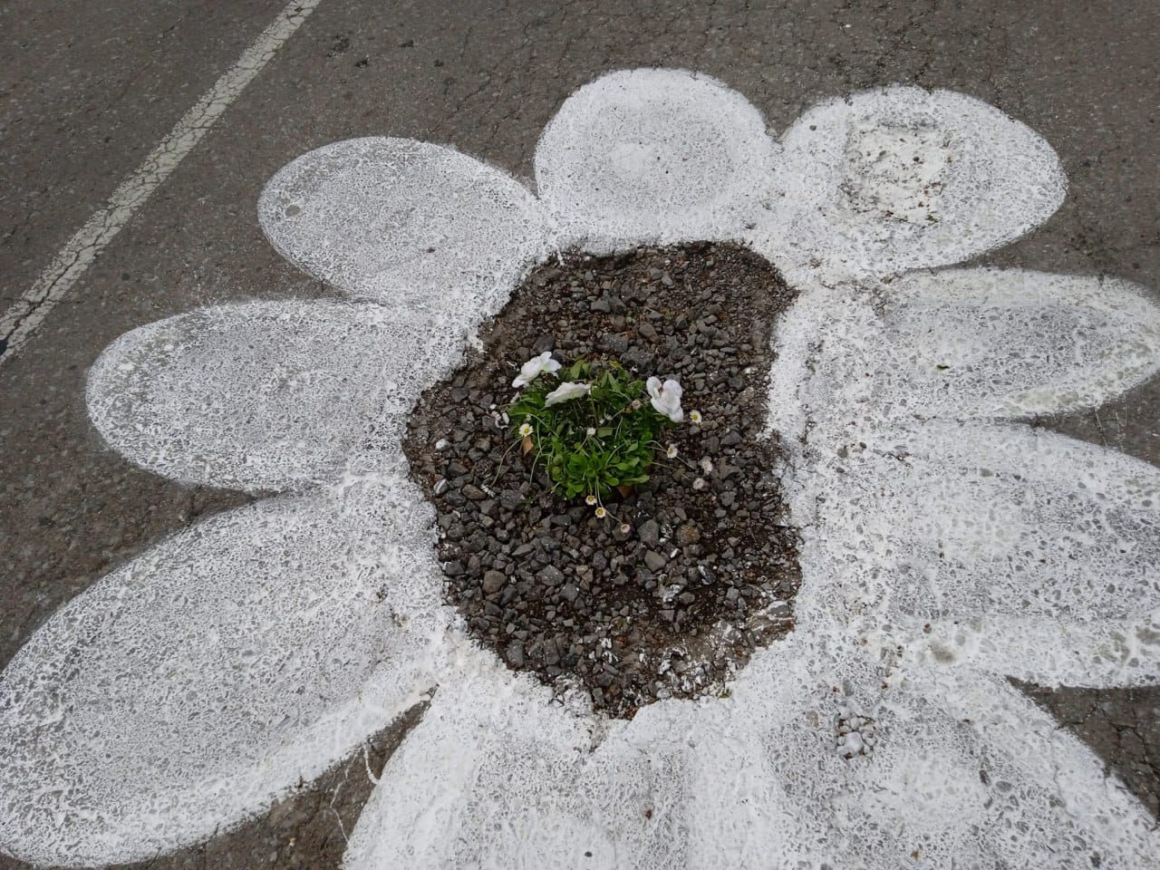 Вони посадили квіти прямо на дорозі, а точніше в ямах на дорозі.