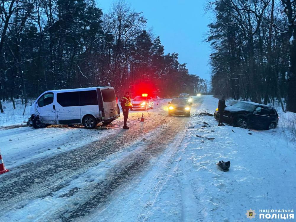 Поліцейські на місці події встановили, що водій автомобіля «Opel Vivaro», 45-річний харків’янин, не врахував дорожню обстановку, виїхав на узбіччя, внаслідок чого мікроавтобус занесло та викинуло на зустрічного смугу, де відбулося зіткнення із автомобілем «BMW X5» під керуванням 34-річного жителя Івано-Франківська.