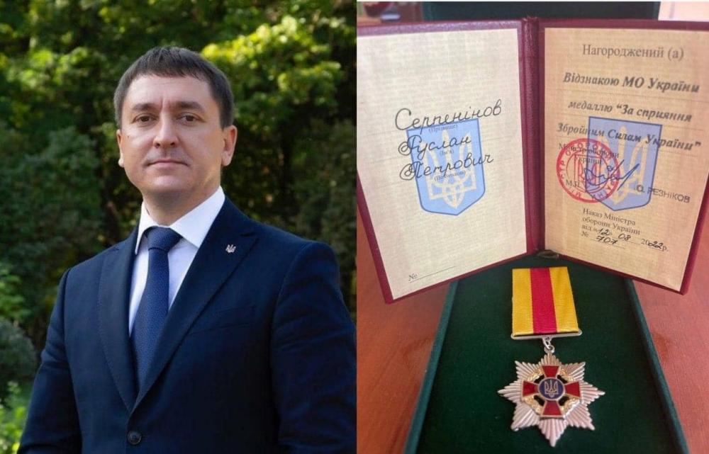 Міський голова Сарн Руслан Серпенінов отримав відзнаку Міноборони "За сприяння ЗСУ".