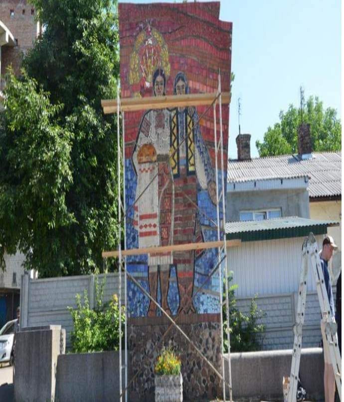 З ініціативи Рівненської міськради в місті демонтували стелу з мозаїкою, що зображувала дві жіночі фігури в національному вбранні.