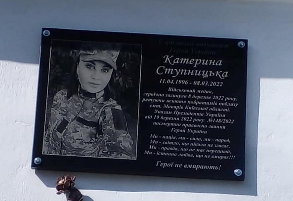 Катерина було військовим медиком і загинула 8 березня поблизу смт. Макарів Київської області. Завдяки дівчині було врятоване не одне життя українських військовослужбовців.