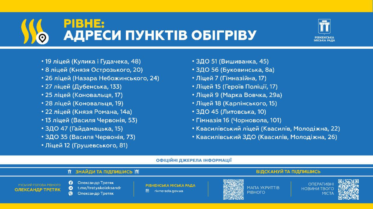 Збережіть собі і поширте серед рідних та знайомих адреси пунктів обігірву у Рівному.