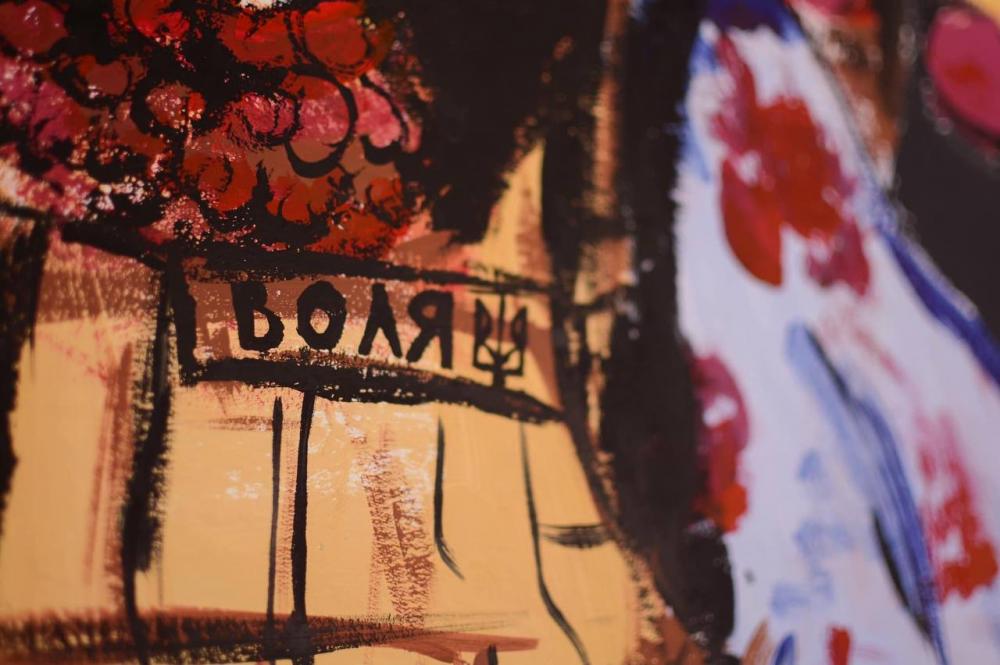 На стінах зупинки «розквітли» образи українців, а також назви наших міст – Харків, Маріуполь, Миколаїв, Київ. У центрі композиції зображена українка у заквітчаному віночку та із зброєю у руках. Також на муралі видніється слово «Воля».