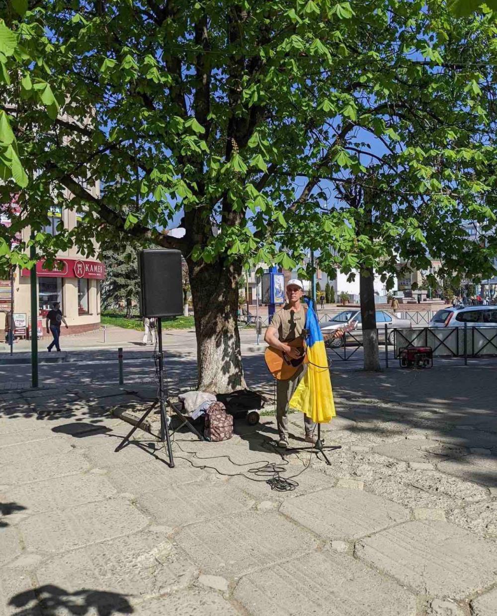 Люди слухають пісні у його виконанні та роблять добровільні внески. Від початку благодійної акції вдалося зібрати понад 300 тисяч гривень.