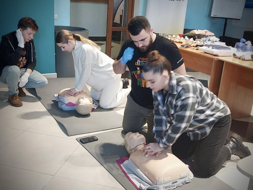 Керівниця Центру готовності цивільних у місті Рівне розповіла, що в Україні програма навчання населення домедичної допомоги почала працювати з початком повномасштабного вторгнення, а безпосередньо у Рівному – рік.