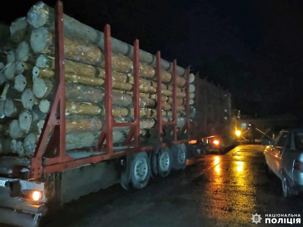 У напівпричепі чоловік перевозив орієнтовно 40 кубів деревини. Документи, які надав керманич, не відповідали дійсності, зокрема мали розбіжності із наявним вантажем.