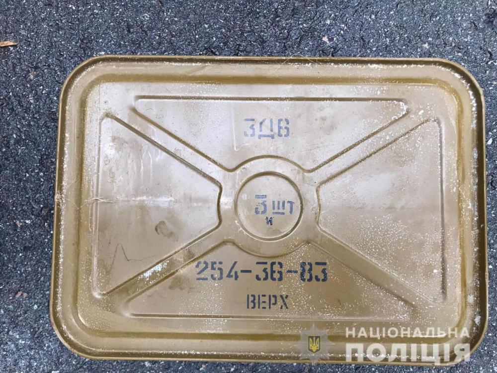 Під час огляду місця проживання підозрюваного, біля його будинку виявили вибухову пастку («розтяжку») та цинк з боєприпасами.