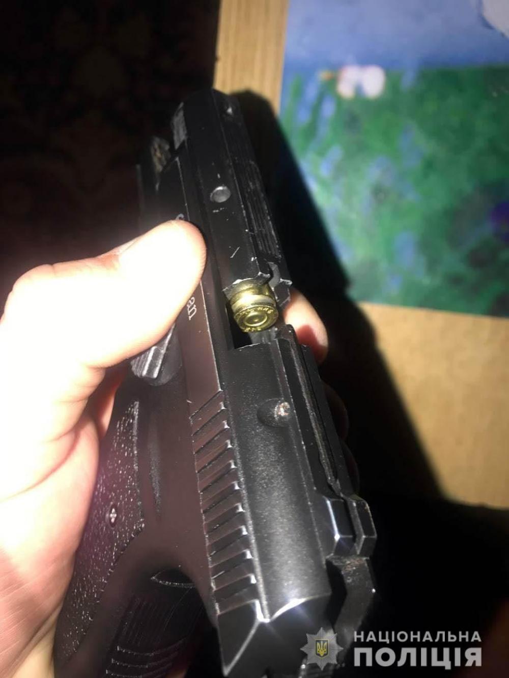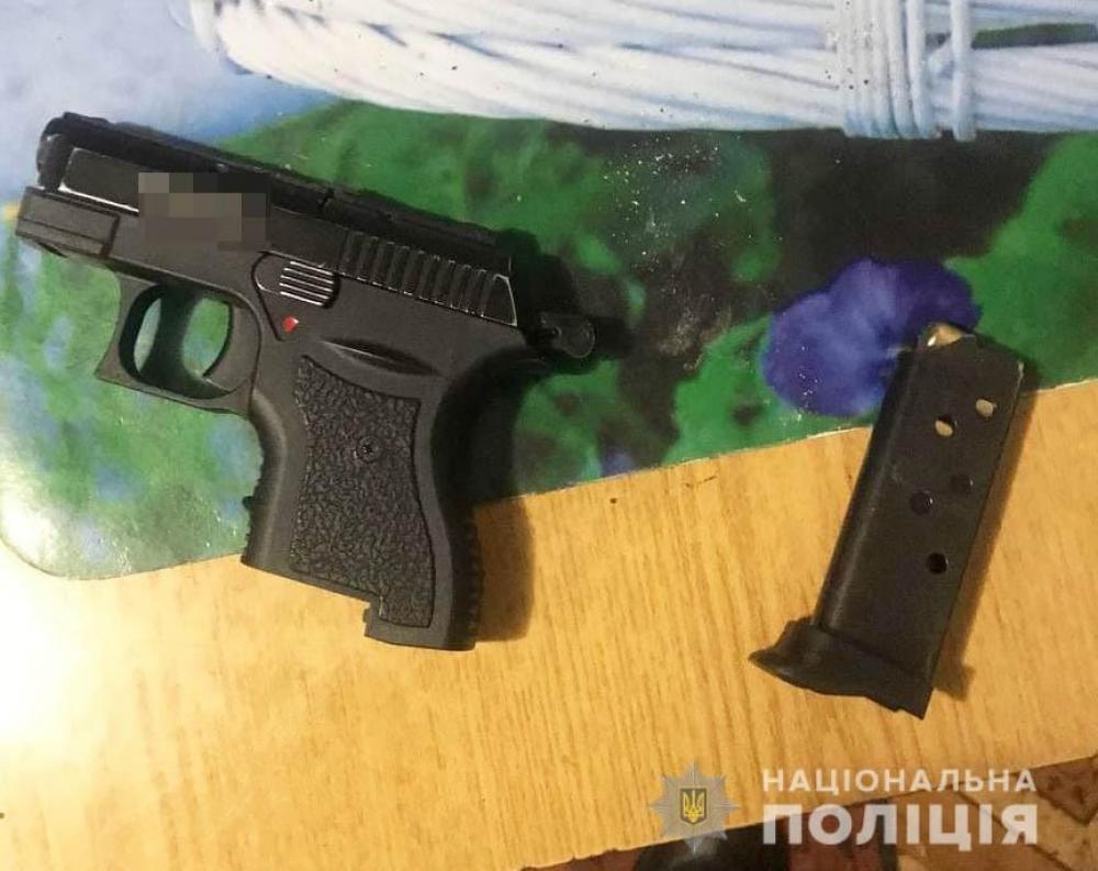 Під час адміністративного затримання в ході проведення поверхневої перевірки поліцейські вилучили у 48-річного чоловіка пістолет з ознаками переробки під стрільбу кулями травматичної дії, а також три патрони споряджені гумовими кулями в магазині та один — в патроннику.