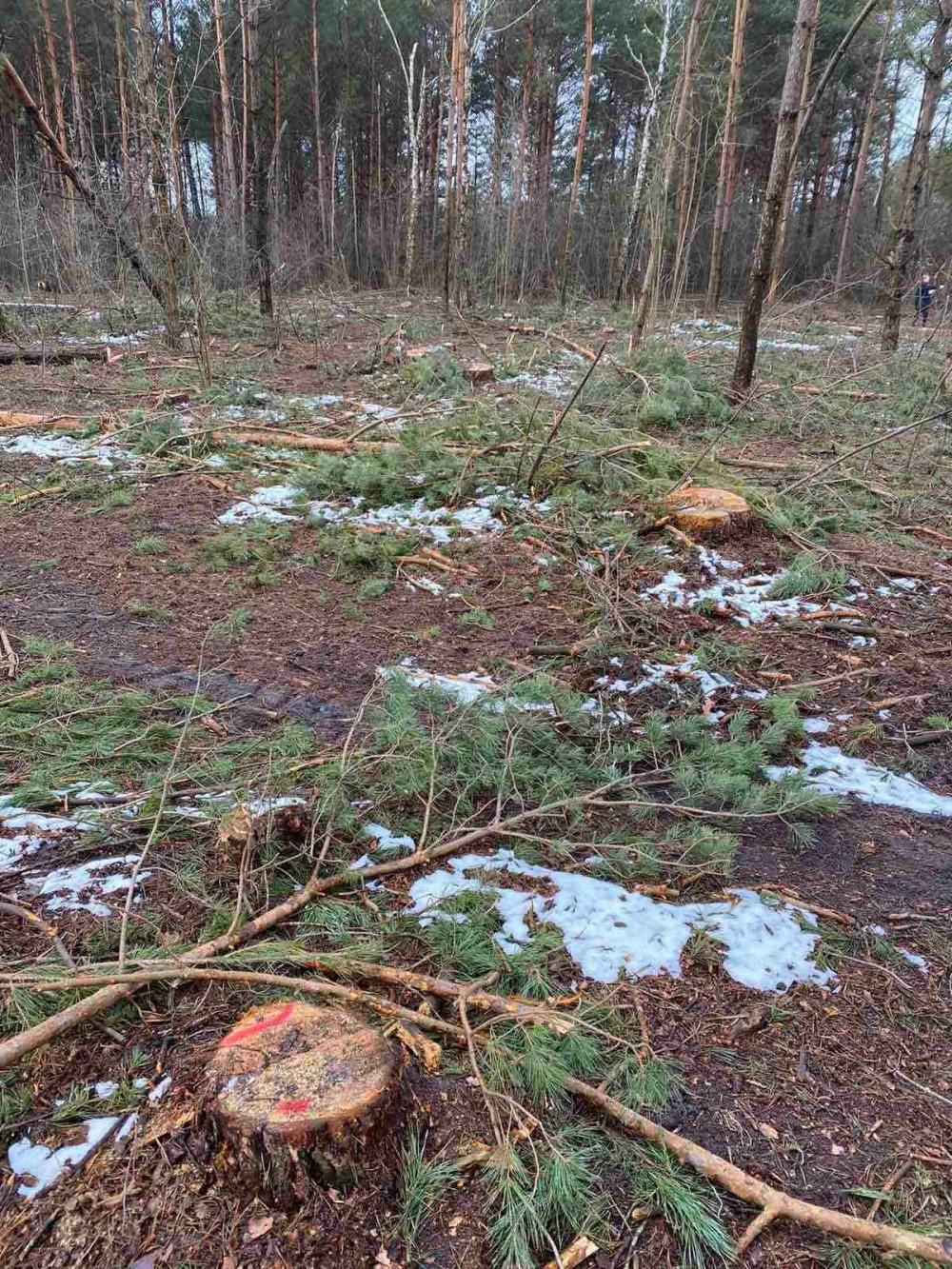 Так, на початку лютого поточного року державними інспекторами з охорони навколишнього природного середовища Поліського округу, спільно з правоохоронними органами виявлено факт порубки 1213 сироростучих дерев породи сосна діаметром від 10 до 59 см.