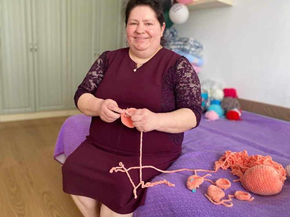 Вона в’яже іграшки та пледи в техніці амігурумі. Цим хобі жінка захопилася понад 2 роки тому, адже через стан здоров’я їй було важко фізично працювати. Так знайшла можливість заробляти гроші руками, до того ж в’язання приносить їй задоволення.