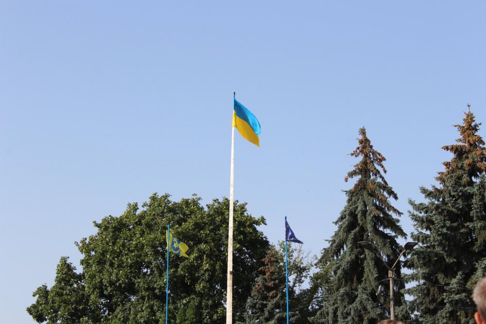 Потому після хвилини мовчання за загиблими внаслідок збройної агресії російської федерації проти України відбулась урочиста церемонія підняття Державного Прапора України.
