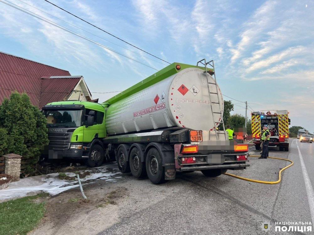 Поліцейські попередньо встановили, що водій автомобіля «Volkswagen Jetta», 51-річний житель Львова із невстановлених поки причин виїхав на смугу зустрічного руху, де допустив зіткнення із автоцистерною «Scania» під керуванням 41-річного жителя Харкова. Від удару вантажівка вʼїхала у приміщення магазину.