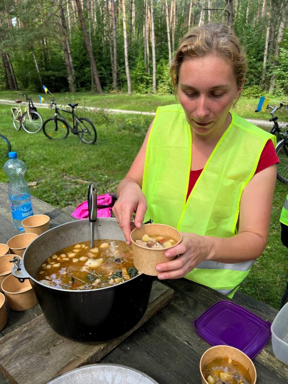 Був у програмі заїзду і смачний обід просто неба, під час якого смакували козацькою юшкою, картоплею з салом на вогні та овочами. Звісно, було багато спілкування та патріотичних бесід.