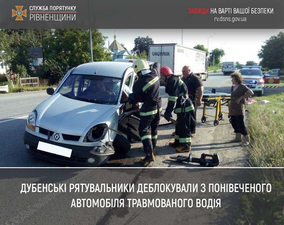 Сьогодні, 4 серпня о 8:25 на спецлінію "101" надійшло повідомлення про ДТП на трасі Київ-Чоп у селі Підлужжя Дубенського району.