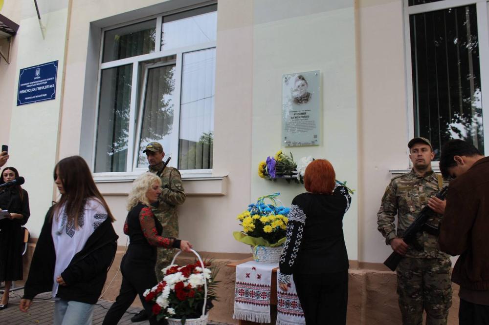 Встановлення меморіальних дошок загиблим захисникам України на закладах загальної середньої освіти у Рівненській громаді відбувається відповідно до програми «Рівне - місто Героїв».