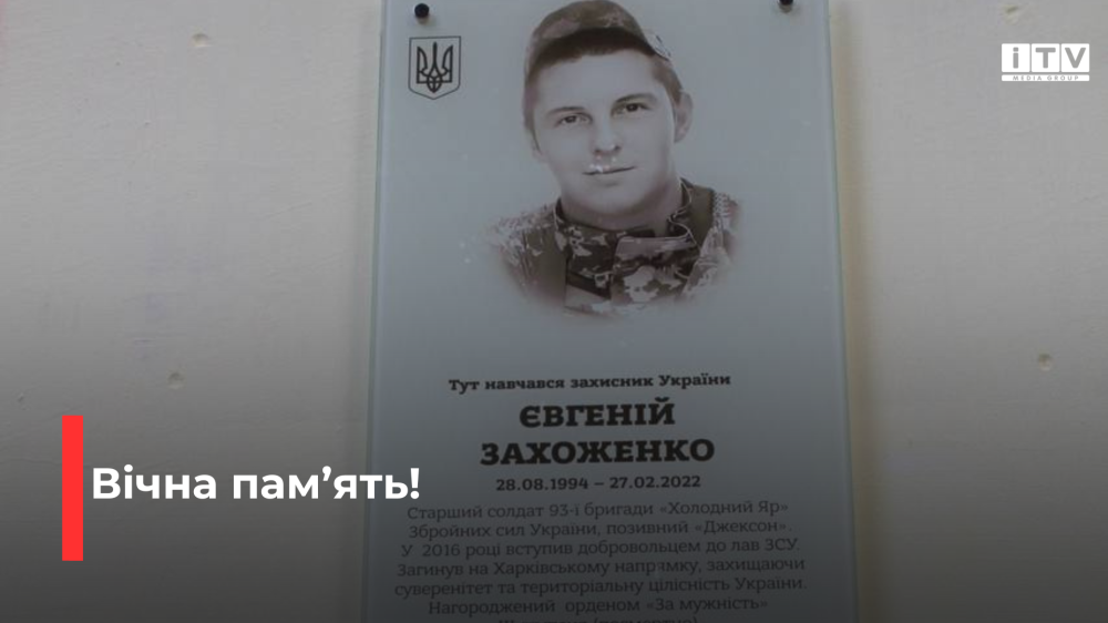Учора на фасаді Рівненської гімназії №3 відкрили меморіальну дошку на честь загиблого Героя – Євгенія Захоженка