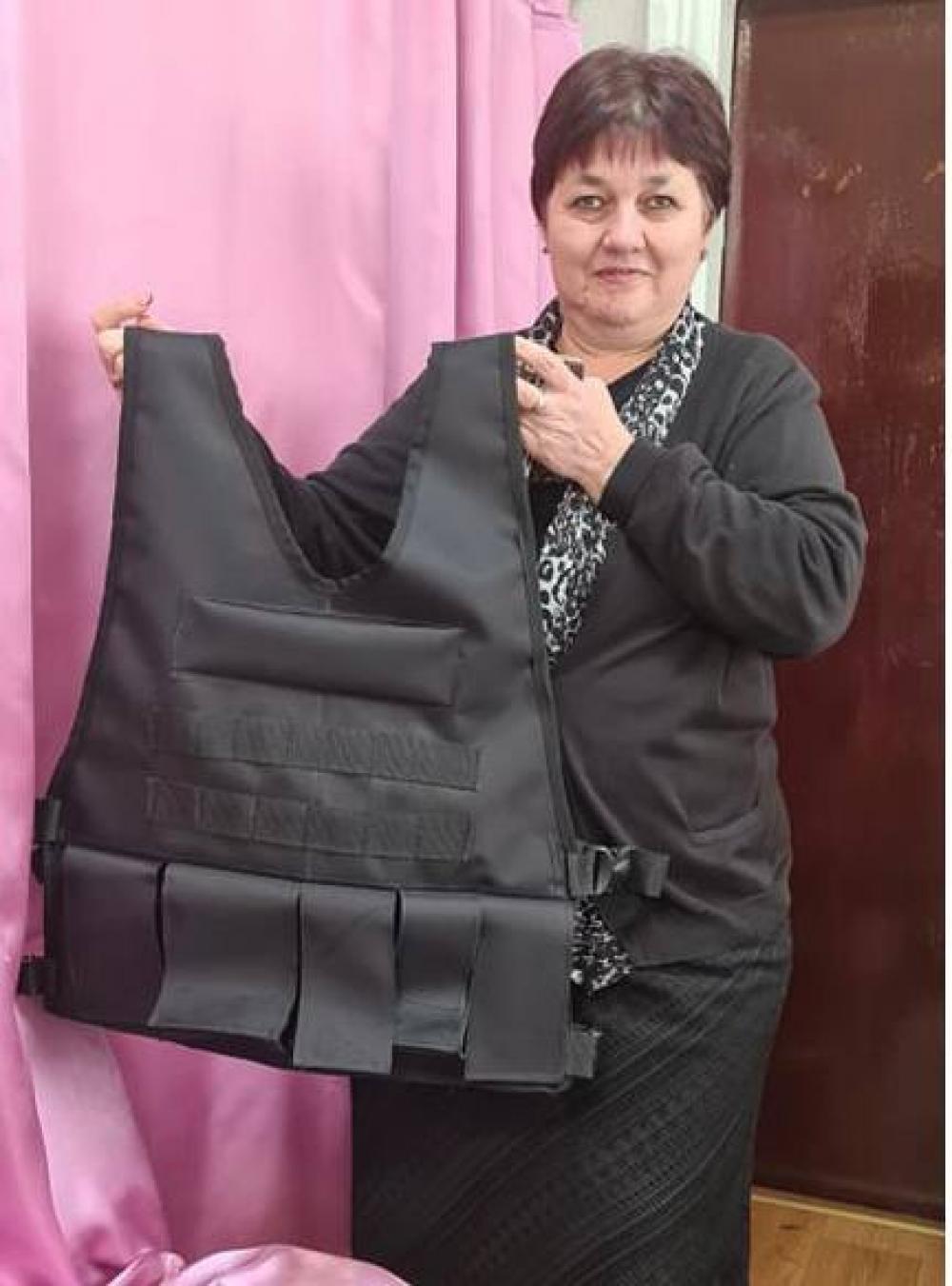 З тканиною, нитками й фурнітурою допомагають волонтери. А над виробами працюють всім колективом. Жінки шиють, а чоловіки вирівнюють та обпалюють стрічки на жилетах. Допомагають їм і вимушені переселенці.