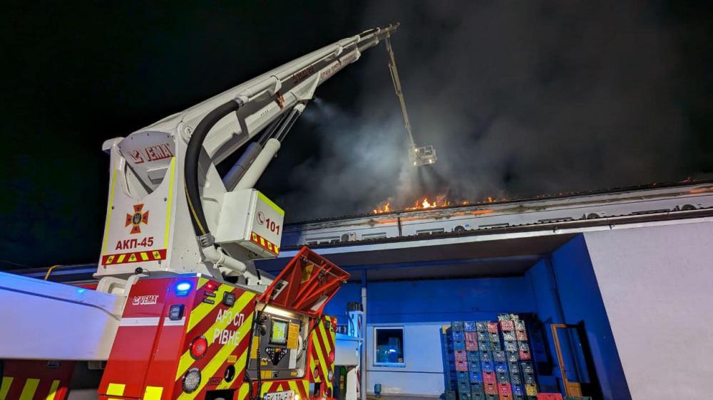 "Зважаючи на швидкість поширення вогню та відсутність джерел протипожежного водопостачання на території підприємства, керівником гасіння пожежі було прийнято рішення про додаткове залучення сил та засобів для гасіння пожежі. Зокрема була залучена пожежно-рятувальна техніка з Рівного, а також пожежні автоцистерни місцевих пожежних команд з найближчих населених пунктів", - розповіли рятувальники.