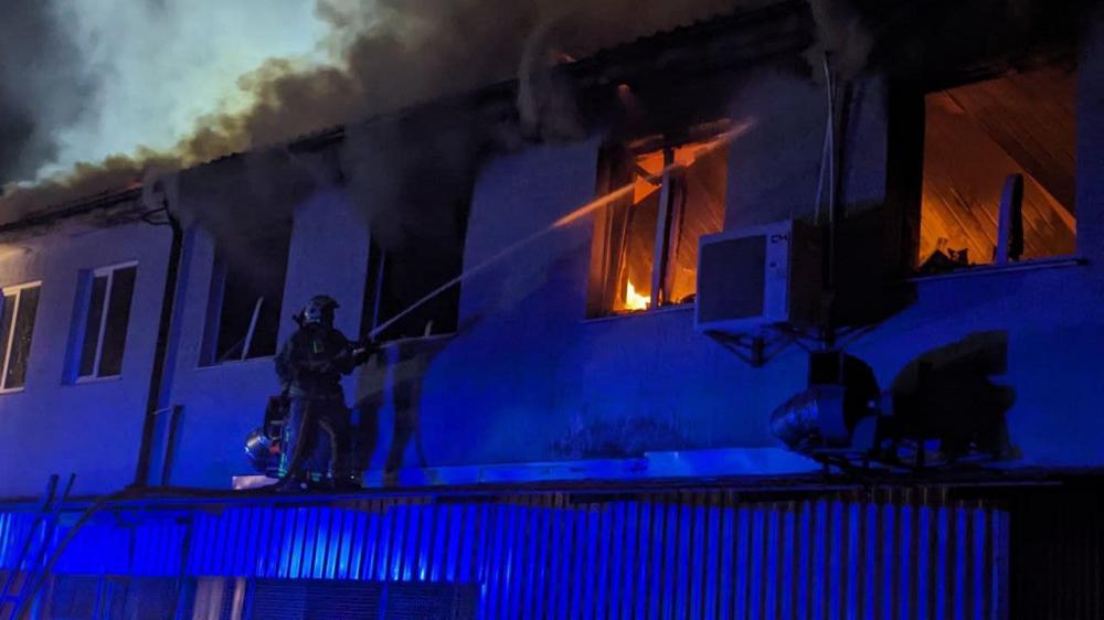 Осередок загорання знаходився на другому поверсі будівлі адміністративного та виробничого приміщення.
