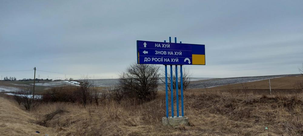Додамо, що вчора Укравтодор розпочав встановлювати нові дорожні знаки «Окупантам рух заборонено». На знаці зображений перекреслений Владімір Путін. Знак вказує ворогу: «Негайно здавайся у полон, або зустрінь смерть». Від сьогодні дія знаку поширюється на дороги усіх форм власності в Україні та союзних державах.