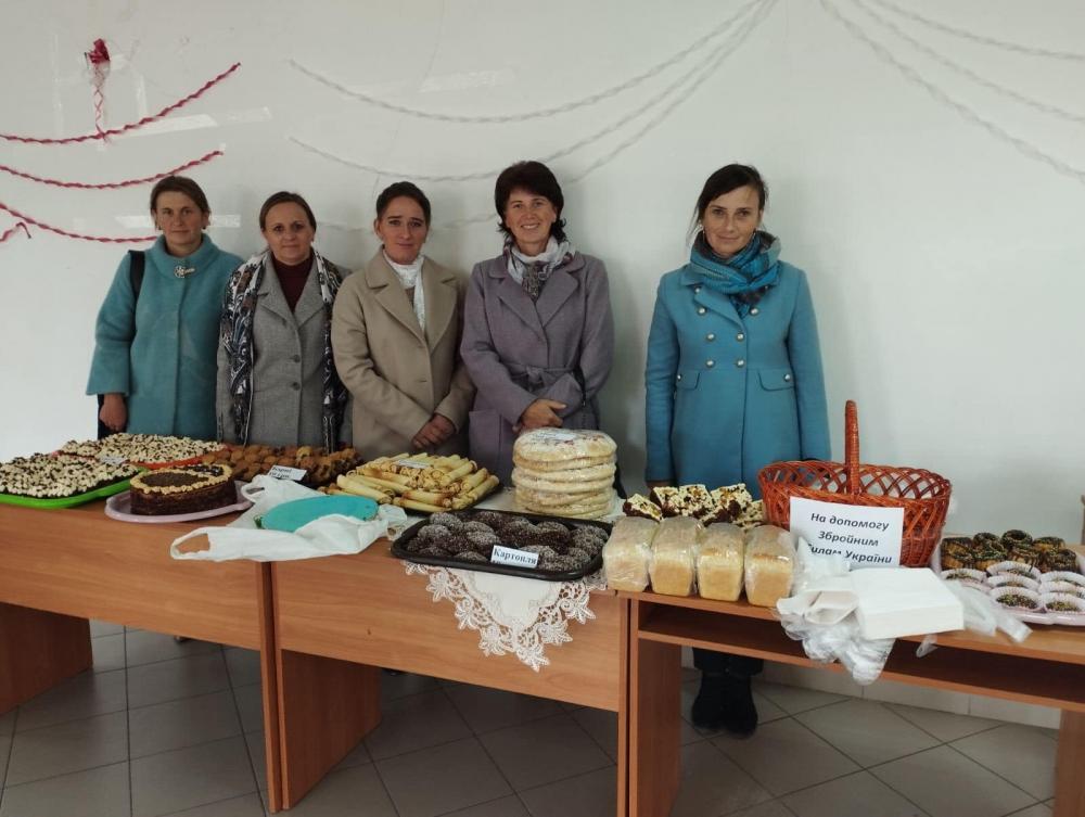 Трудовий колектив Великомидського ліцею зібрав кошти для придбання продуктів на кулінарні вироби, а майстрині кухні приготували смаколики, які були продані на ярмарку.