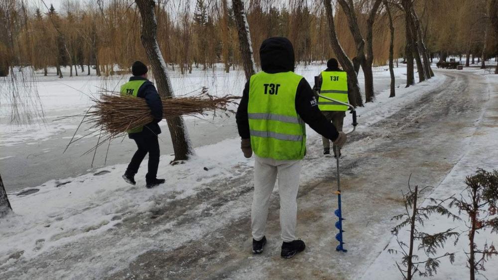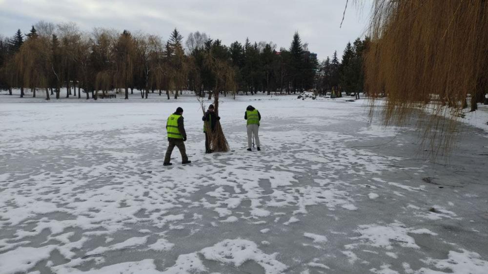 "Робили лунки на Лебединці для риби, так як товщина льоду дозволила це зробити. Наші лунки ми позначили деревиною, аби добре було видно", - йдеться у повідомленні.