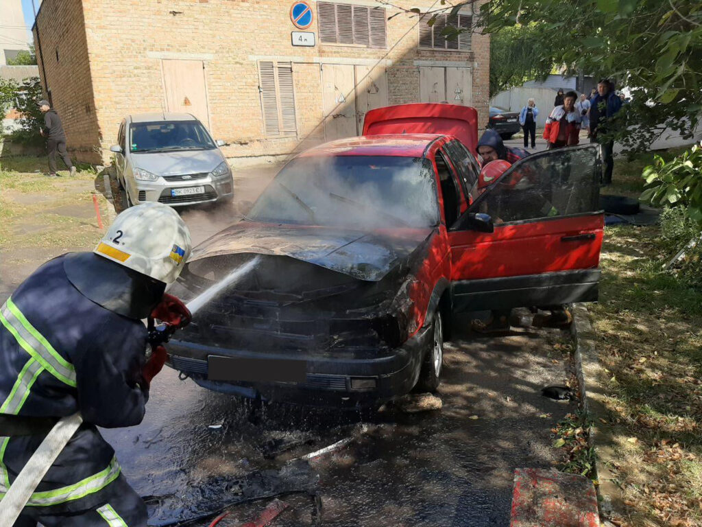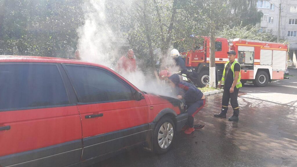 18 вересня у Рівному по вул. Макарова горів автомобіль.  Вогнеборці швидко ліквідували вогонь, який охопив авто «Volkswagen Passat B3».